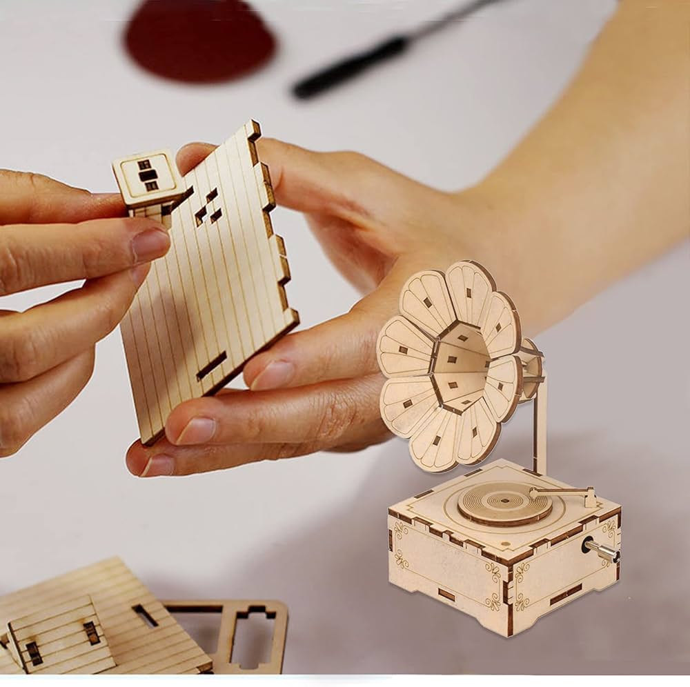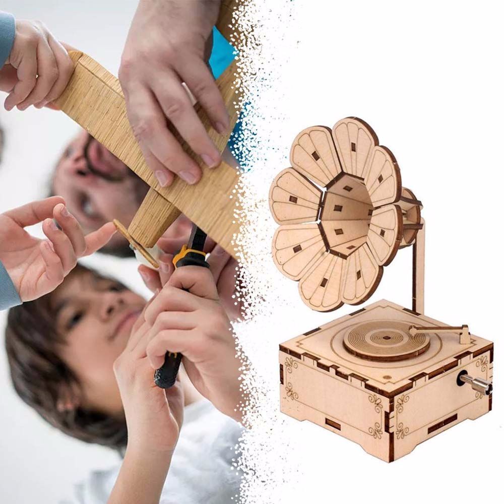 Experience the charm of old-time music with this hand-cranked DIY Phonograph 3D puzzle. Assemble it yourself to improve coordination, creativity, and enjoy a touch of nostalgia. This educational and entertaining puzzle makes a perfect gift, providing both a fun challenge and a sense of accomplishment.